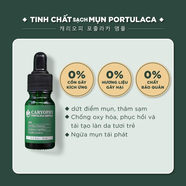 ✔️ Serum Caryophy Portulca Ampoule là Serum trị mụn thâm Hàn Quốc với dung tích 10ml có khả năng trị mụn, trị thâm, dưỡng ẩm, kháng khuẩn kháng viêm, phục hồi da và chống lão hóa toàn diện.